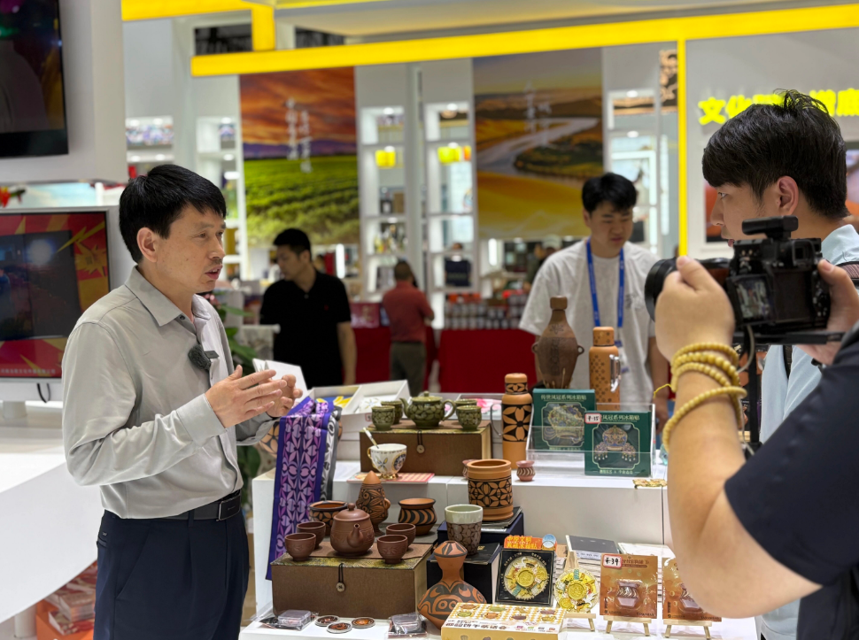 展會期間,董事長王新軍成為了仰韶文化有力的當(dāng)代“代言人”。他精神飽滿,從容應(yīng)對來訪媒體的鏡頭與話筒,向全國乃至世界觀眾講述仰韶彩陶的獨特魅力與深厚底蘊。從企業(yè)如何秉持匠心守護傳統(tǒng)工藝,到如何通過創(chuàng)新設(shè)計讓古老文物“活”在當(dāng)下。他的講述,讓仰韶文化從塵封的歷史中躍然而出,煥發(fā)出歷久彌新的時代光彩。